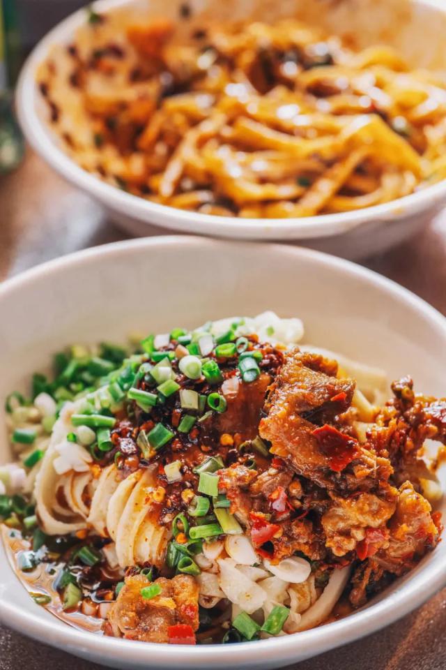 而在安顺旧州,炒鸡时糍粑辣椒要比鸡肉多出许多,"辣子鸡"也就跟着变成了"鸡辣子"。辣子鸡在贵州已经不单单是一道菜,而是已成为一种调味,无论走进哪家面馆、粉馆,都能吃到用辣鸡作臊子的粉面。