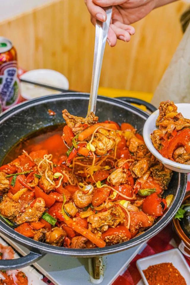 辣子鸡和宫保鸡丁这两大王牌之外,贵州还有众多吃鸡方式。罗甸黄豆鸡以黄豆的酥脆搭配鸡肉的鲜嫩,是炒鸡界的奇兵;桐梓碓窝鸡入锅前先经历一番捶打,去除血水杂质,又让鸡肉更加细嫩;柴火鸡铁锅慢炖,贴一圈玉米粑粑,让人误以为来到东北;番茄鸡让番茄告别鸡蛋,直接和鸡肉搭档,汤汁越煮越浓稠;赤水方竹笋炖鸡将方竹笋的脆嫩与鸡肉的鲜香融合,浓缩山野的极致之鲜;毕节大方豆干鸡又可以同时满足肉类爱好者和豆制品爱好者。